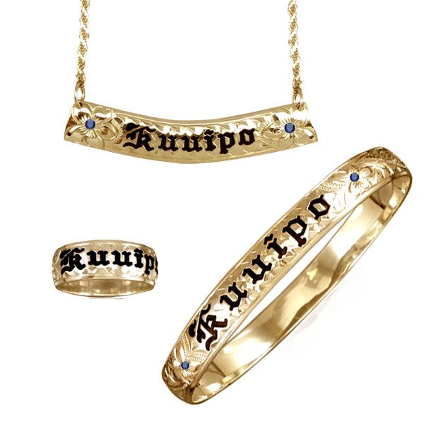 14K Yellow Gold Custom Hawaiian Set with Plumeria and Birthstone