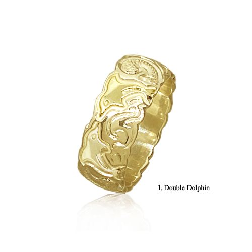 14KT Yellow Gold Custom Hawaiian Wedding Ring with Cut-out Edges. Available in 8mm, 10mm and 12mm. Free inside inscription included. 12 Designs are available.