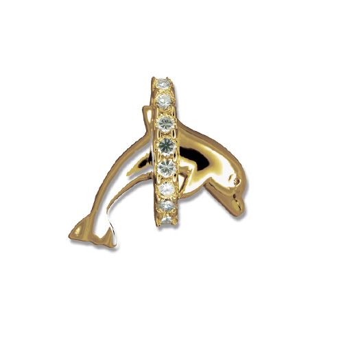 14kt Yellow Gold Jumping Dolphin & Hawaiian CZ Leis Pendant. This jumping dolphin pendant is 1 1/16" in width and 15/16" in length. This pendant is high polished to make it more shiny.