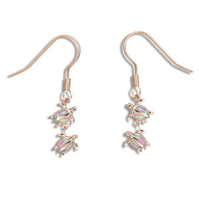 Sterling Silver Hawaiian Double Honu Pink Opal Fish Wire Earrings