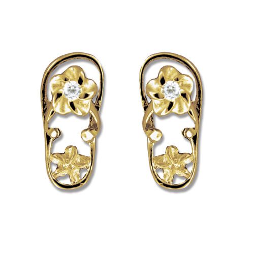 14kt Yellow Gold Hawaiian Plumeria Design with CZ Slipper Earrings