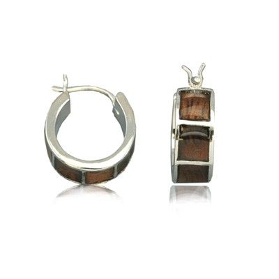 Sterling Silver Hawaiian Koa Wood Hoop Design Post Earrings
