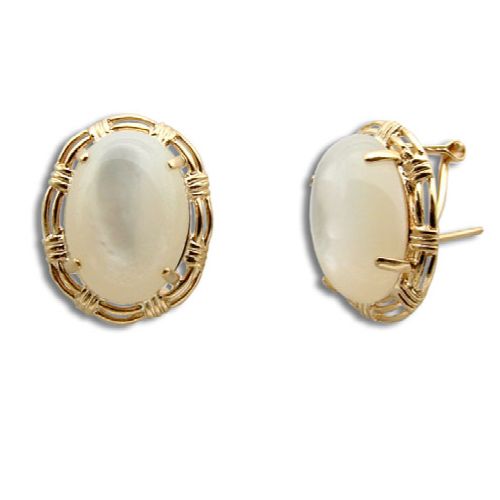 14KT Gold Cut-In Rope Design with Oval Shaped MOP (Mother of Pearl Shell) French Clip Earrings
