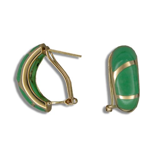14KT Yellow Gold Half-Hoop Green Jade French Clip Earrings
