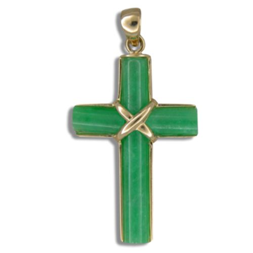 14KT Yellow Gold Green Jade Cross Shaped Pendant.