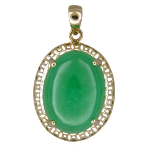 14KT Yellow Gold Cut-In Chinese Pattern Design with Oval Shaped Green Jade Pendant