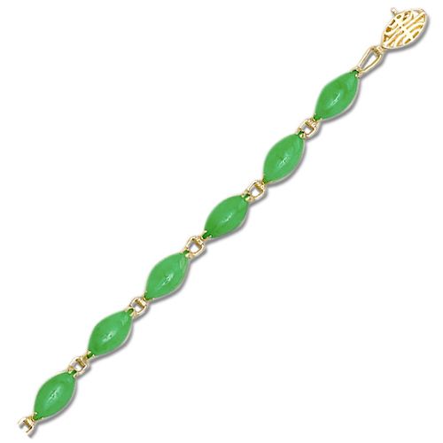 14KT Yellow Gold Oval Shaped Green Jade Link Bracelet