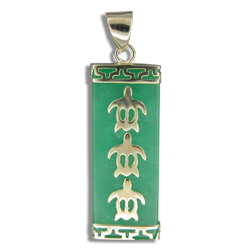 14KT Yellow Gold Hawaiian Honu with Rectangle Shaped Green Jade Pendant (S)