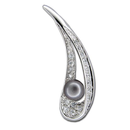Sterling Silver Tear Drop with CZ and Fresh Water Pearl Pendant