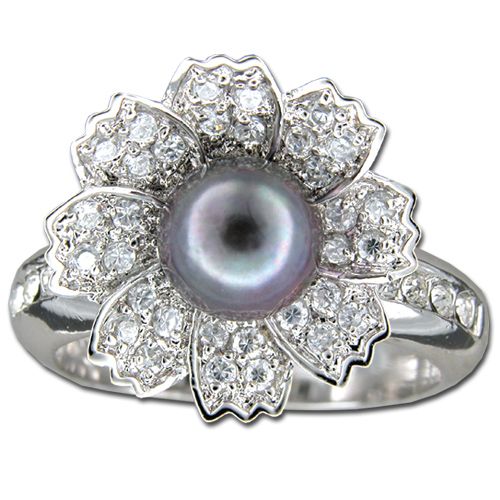 Sterling Silver 8 Petals Flower with CZ and Fresh Water Pearl Ring
