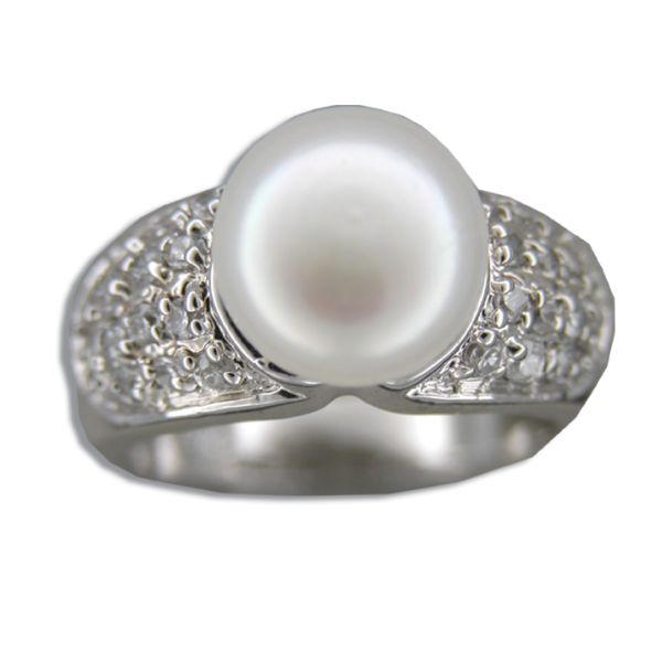 Sterling Silver Channel Set Clear CZ with White Fresh Water Pearl Ring