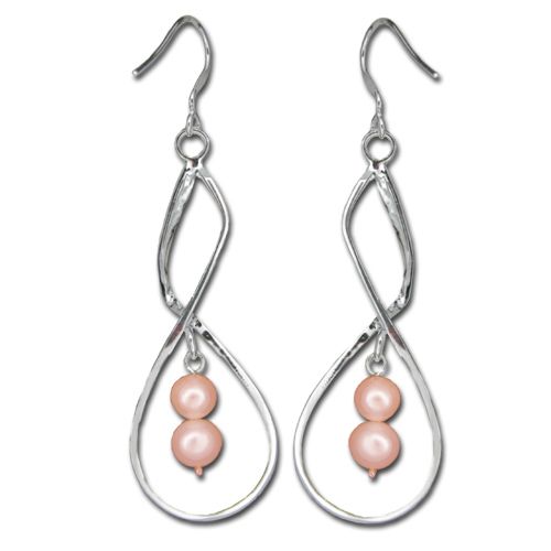Sterling Silver Double Swirl with Peach Fresh Water Pearl Fish Wire Earrings