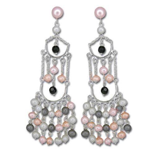 Sterling Silver Layered Mixed-Color Fresh Water Pearl Dangling Post Earrings