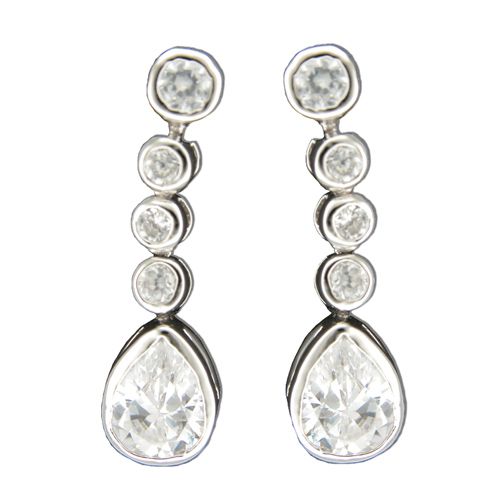 Sterling Silver Bezel Set Clear CZ Drop Earrings
