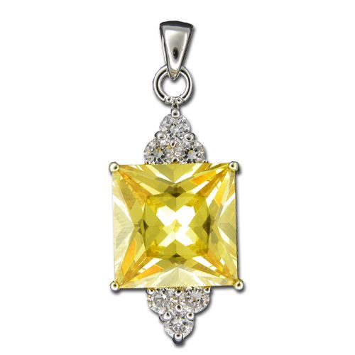 Sterling Silver Double Clear CZ Triangle with Square-Cut Citrine Yellow CZ Pendant