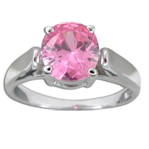 Sterling Silver Oval Shaped Pink Tourmaline CZ Ring