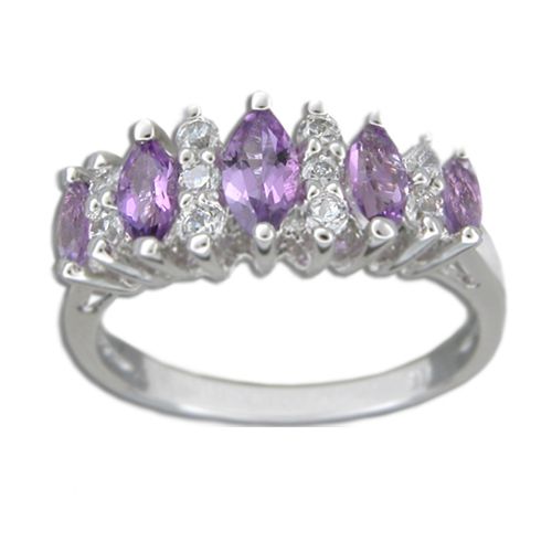 Sterling Silver Marquise Shaped Amethyst Purple CZ and Clear CZ Ring