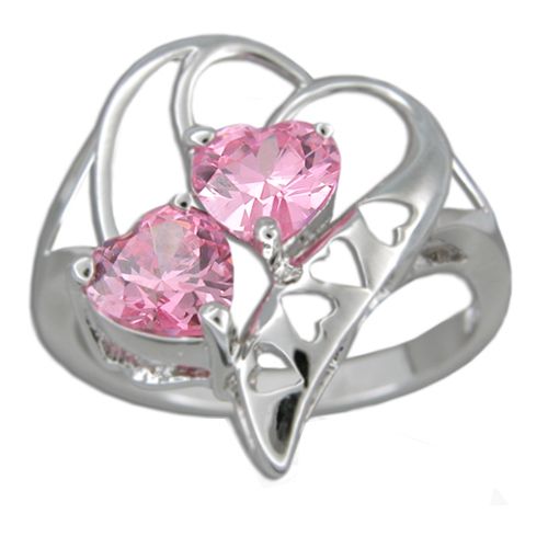 Sterling Silver Heart Shaped Pink Tourmaline CZ in Heart Ring