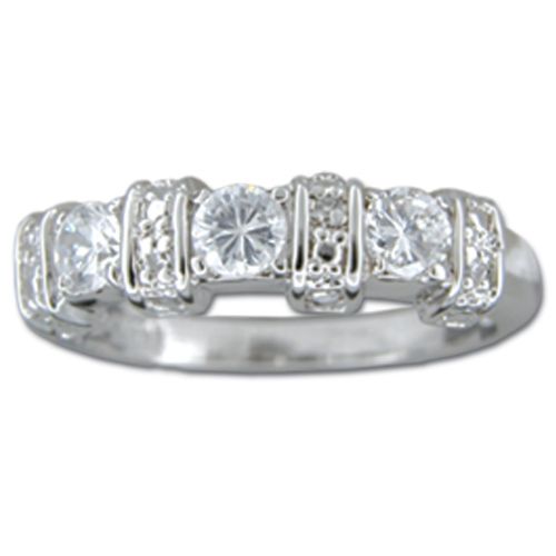 Sterling Silver Hand Carved Bar with Three Stone Round-Cut Clear CZ Ring