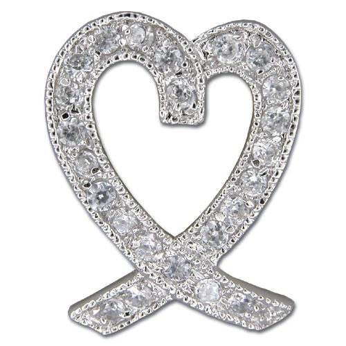 Sterling Silver Ribbon Heart with Clear CZ Pendant