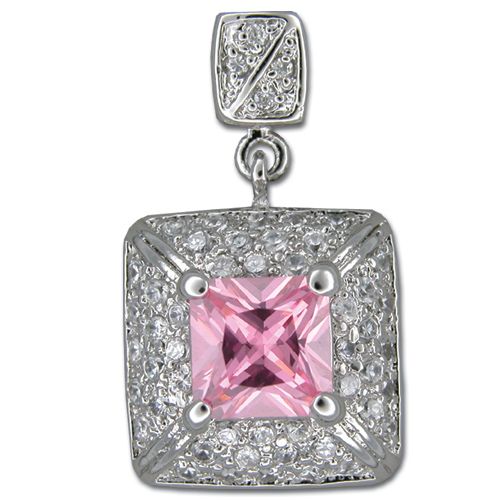 Sterling Silver Vintage Design Square Cut Tourmaline Pink CZ Pendant