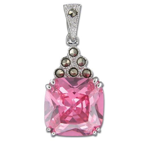 Sterling Silver Square-Cut Pink Tourmaline CZ Pendant