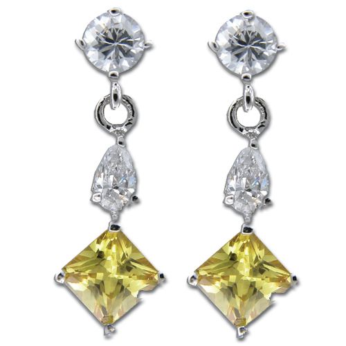 Sterling Silver Clear and Citrine Yellow CZ Dangling Earrings