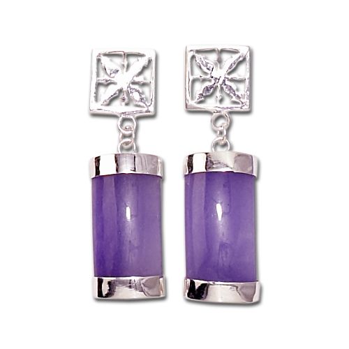 Sterling Silver Hawaiian Pineapple Quilt with Purple Jade Earrings