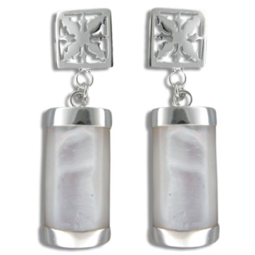 Sterling Silver Hawaiian Pineapple Quilt with MOP (Mother of Pearl Shell) Earrings