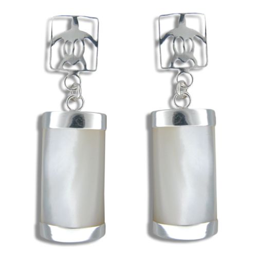 Sterling Silver Hawaiian Honu with Long Bar Shaped MOP (Mother of Pearl) Earrings