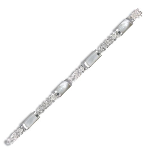 Sterling Silver Hawaiian Plumeria and Scroll with Long Bar White MOP (Mother of Pearl Shell) Bracelet