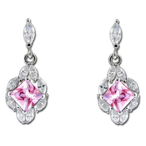 Sterling Silver CZ Leis with Oval Shaped Tourmaline Pink CZ Drop Earrings