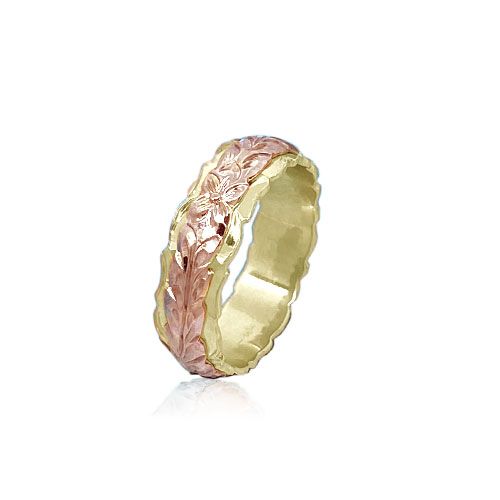 14KT Gold Rose and Yellow Double Two Tone Hawaiian Maile Wedding Ring Band