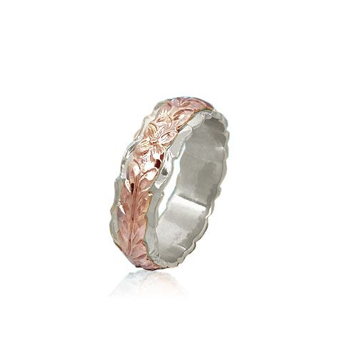 14KT Gold Rose and White Double Two Tone Hawaiian Maile Wedding Ring Band
