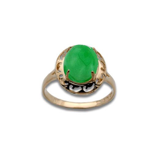 14KT Yellow Gold Oval Shaped Green Jade with Cut In Waves Design Ring