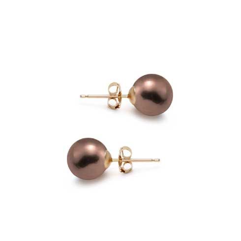 14KT Yellow Gold AAA Round Chocolate Pearl Stud Earrings. 8.5mm in size.