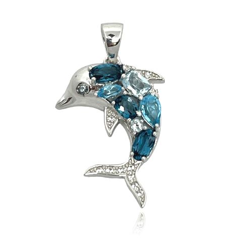 Sterling Silver Mixed Shades Blue Topaz Dolphin Pendant