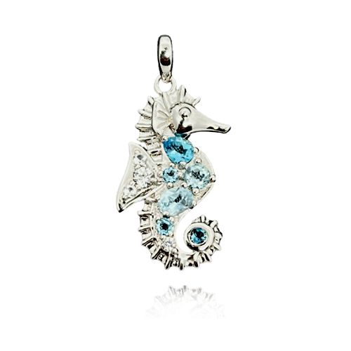 Sterling Silver Mixed Shades Blue Topaz Seahorse Pendant