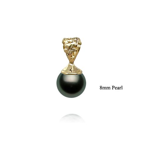 14KT Yellow Gold Small Plumeria Scroll Design AAA Round Tahitian Pearl Pendant