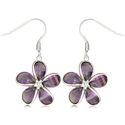 Sterling Silver Badge Design with Square-Cut Amethyst Purple CZ Pendant