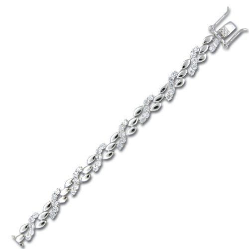 Sterling Silver Bypass Design with Clear CZ Tennis Bracelet