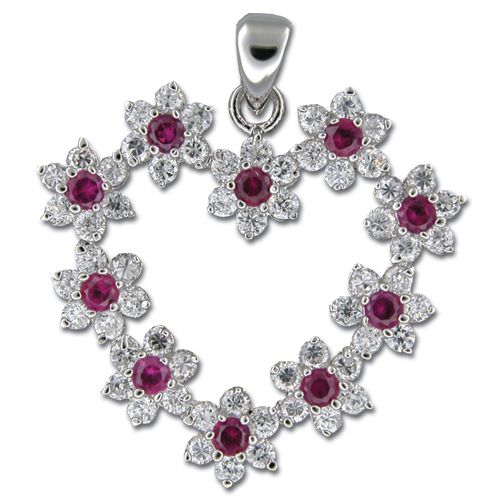 Sterling Silver Channel Set Tourmaline Pink CZ Heart Pendant
