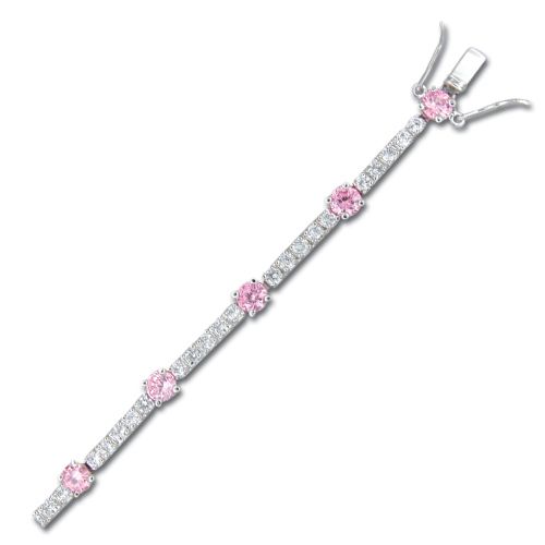 Sterling Silver Clear and Tourmaline Pink CZ Bracelet