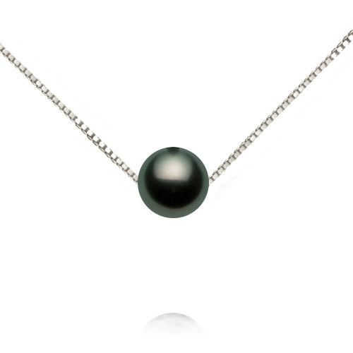 A gorgeous, AAA single round Black pearl hangs from this necklace for a simple and classy accessory. Available in 8mm to12mm Tahitian Pearl size.