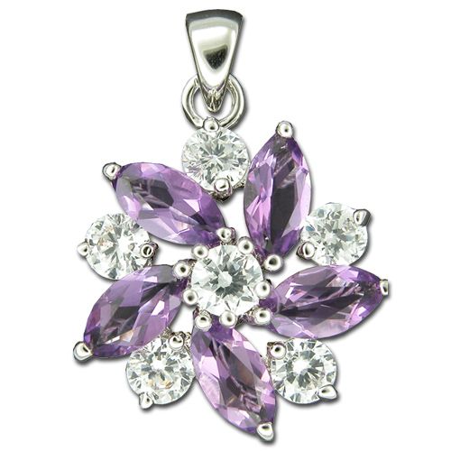 Sterling Silver Flower Design with Clear and Amethyst Purple CZ Pendant