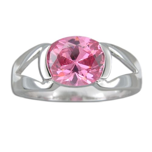 Sterling Silver Flower Design with Tear-Drop Shaped Pink Tourmaline CZ Drop Earrings