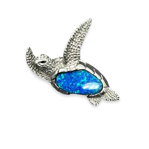 Sterling Silver Mixed Shades Blue Topaz Rising Sea Turtle Pendant