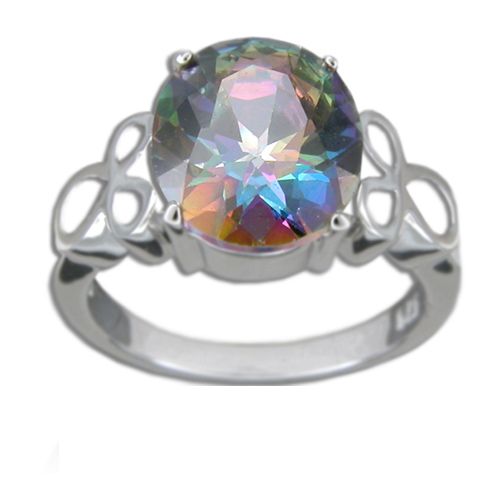 Sterling Silver Oval Shaped Mystic Topaz Color CZ Ring