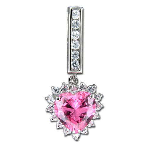 Sterling Silver Triple Heart with Clear and Pink Tourmaline CZ Drop Earrings