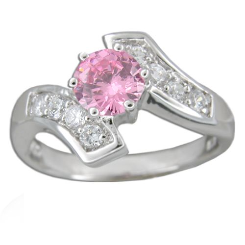 Sterling Silver Twist with Pink Tourmaline CZ and Clear CZ Ring